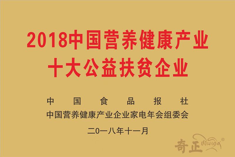 中國營養(yǎng)健康產(chǎn)業(yè)十大公益扶貧企業(yè)(2018.11)