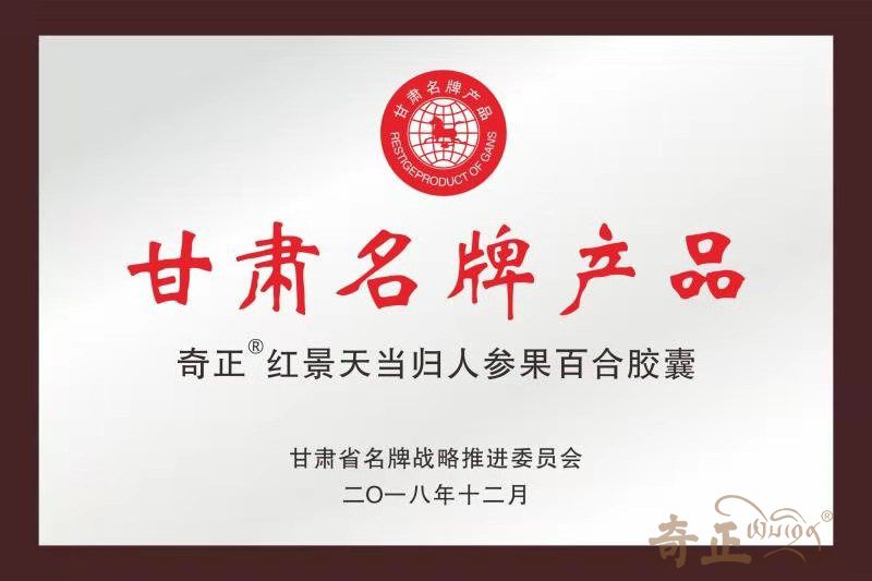 奇正紅景天當(dāng)歸人參果百合膠囊獲甘肅省名牌產(chǎn)品