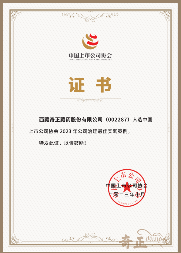 近日,“中國上市公司協(xié)會2023年公司治理最佳實踐案例”評選結(jié)果揭曉,奇正藏藥通過嚴(yán)格的遴選和評審程序,從5000多家A股上市公司中脫穎而出,入選最佳實踐案例,并被收錄至《中國上市公司治理報告》。