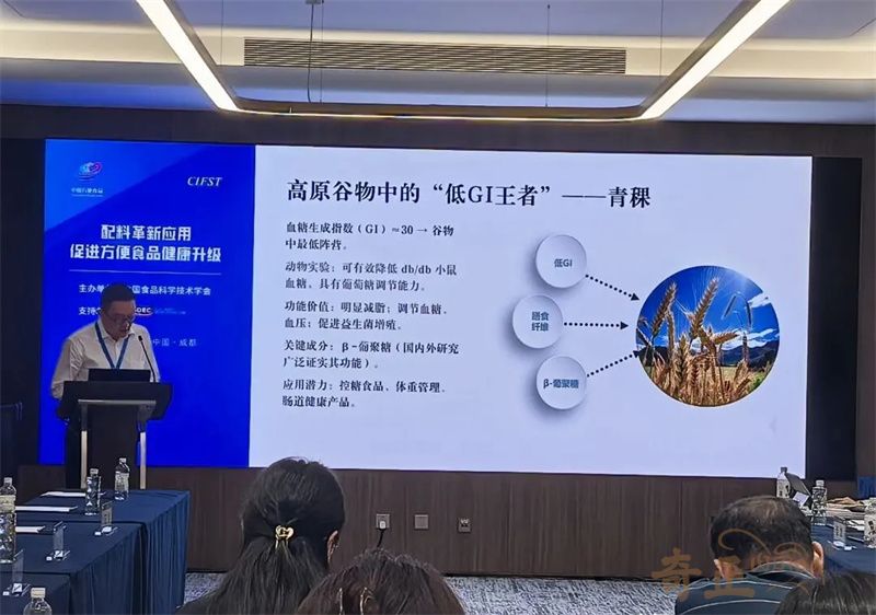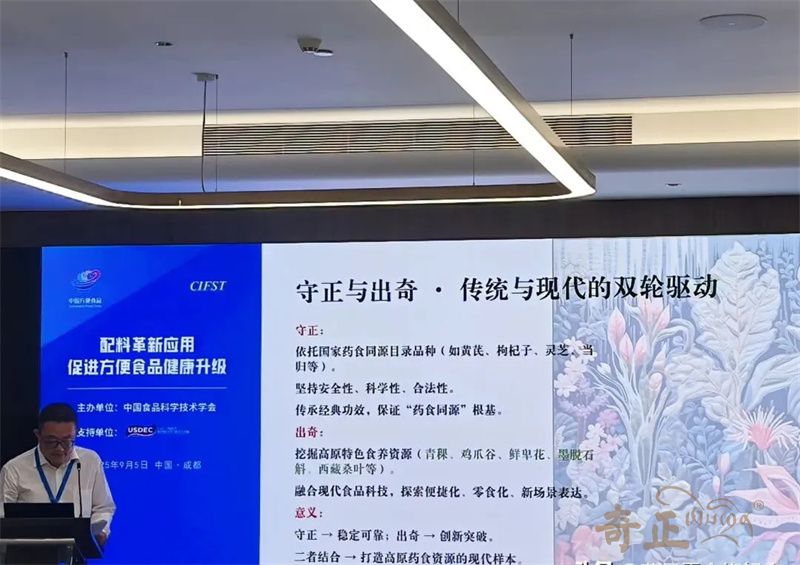 近日,由中國(guó)食品科學(xué)技術(shù)學(xué)會(huì)(CIFST)主辦的第二十五屆中國(guó)方便食品大會(huì)在四川成都召開。本屆大會(huì)以“韌性成長(zhǎng) 向新而行”為主題,通過(guò)權(quán)威報(bào)告、行業(yè)對(duì)話、創(chuàng)新展示等不同維度,全面解碼方便食品產(chǎn)業(yè)高質(zhì)量發(fā)展的新趨勢(shì)、新動(dòng)能與新路徑。奇正青稞作為青稞產(chǎn)業(yè)龍頭企業(yè),攜旗下產(chǎn)品參會(huì),奇正集團(tuán)總經(jīng)理、奇正青稞董事長(zhǎng)程若瓊做了題為《 守正出奇--以新質(zhì)生產(chǎn)力開拓高原的藥食寶藏 》為主題的專題報(bào)告。